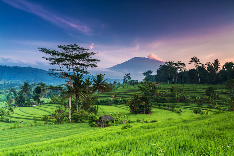 L'Indonésie est la plus vaste zone volcanique du monde : pas moins de 400 volcans y sont répertoriés, dont une centaine toujours actifs. Quelquefois destructeurs, ils fertilisent la terre, faisant surgir à leur pied plantations luxuriantes et rizières au vert éblouissant.