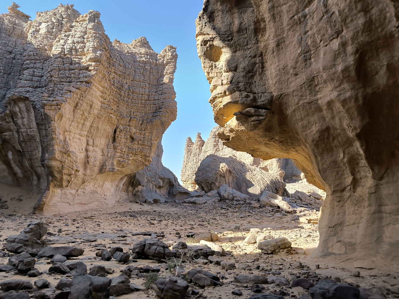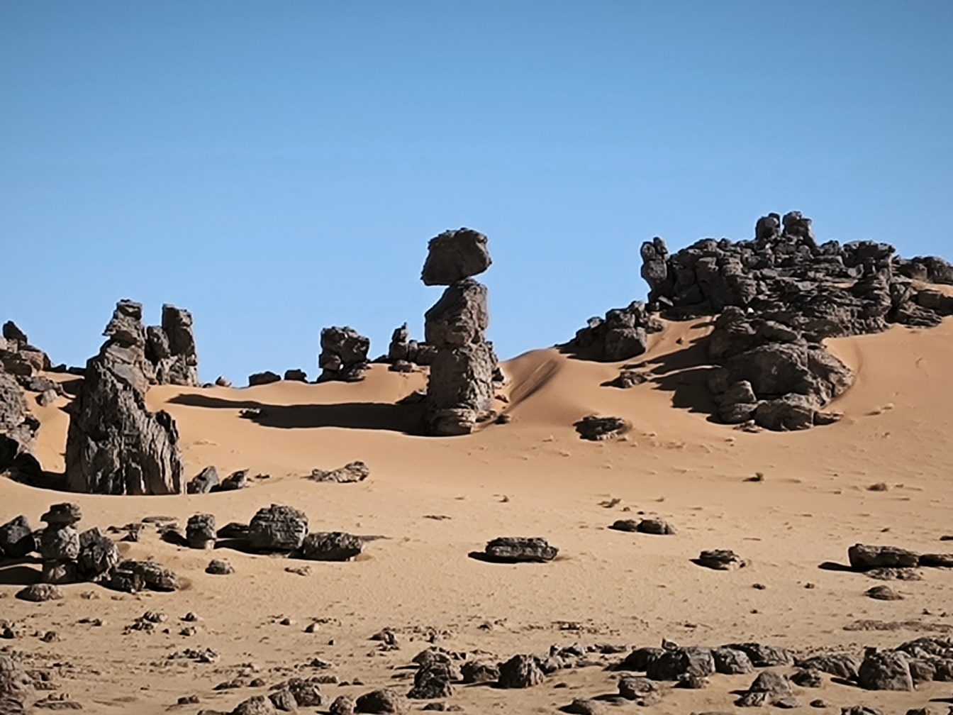 Un superbe trekking entre tassili n’Ajjer et erg Admer pour découvrir toute la diversité des paysages du désert autour de Djanet, magnifiés par l’ambiance de la caravane d’ânes. Sable et rochers, petites dunes et forêt de pitons rocheux, peintures rupestres de Tamrit et Sefar, parmi les plus célèbres du monde…