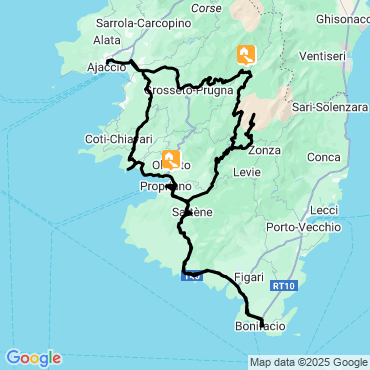 Début et fin de séjour à Ajaccio.