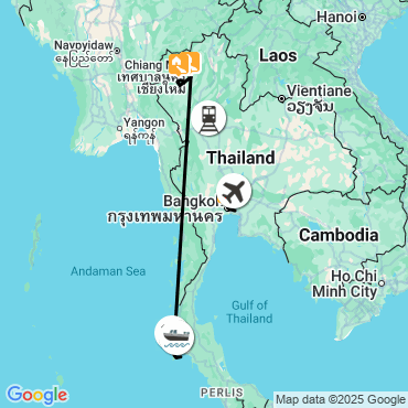 La vibrante Bangkok, la cité aux trois cents temples de Chiang Mai et ses paysages montagneux, l’ethnie des Karen au cœur du parc national de Doi Inthanon et la beauté des îles du sud avec leurs plages paradisiaques... la recette parfaite pour découvrir la Thaïlande, à personnaliser à votre guise pour en faire une expérience de voyage qui vous ressemble ! A pied et en train, ou même à bicyclette si vous le souhaitez, découvrez la richesse culturelle du nord thaïlandais, où histoire, architecture millénaire, traditions et modernité se côtoient à chaque détour de ruelle. Goûtez aux délices de la cuisine thaïlandaise et, pour une fin de voyage en toute détente, profitez de la quiétude de l’île encore peu connue de Koh Yao Yai, avec ses plages désertes, son village de pêcheurs et son charme authentique.